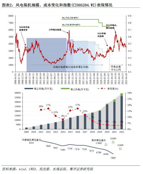 盡管行業遭受強監管,投資熱情受到短暫性的壓制,但在持續的研發投入和項目實踐中,風電成本快速降低。風電的經濟性改善促使了國家補貼逐步退坡,由此引發了補貼退坡時點前的風電“搶裝潮”,在業績高增預期之下指數開啟搶裝驅動的階段性上漲行情。