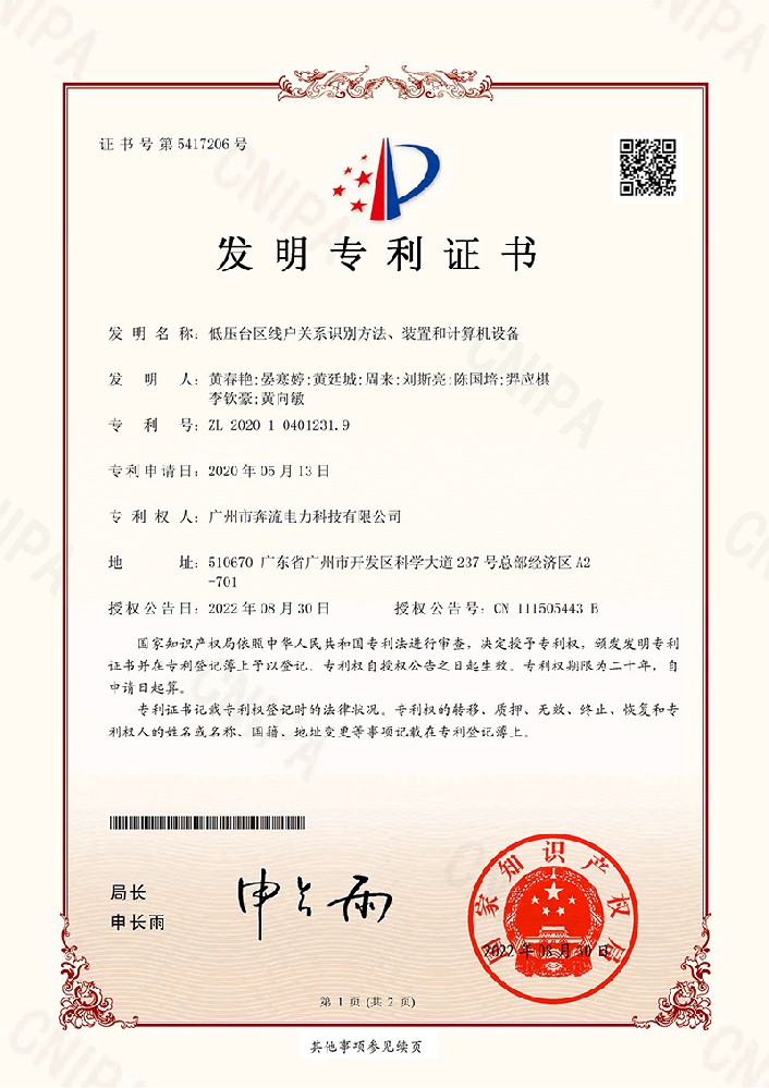 臺區(qū)相戶關系的可信度檢測方法、裝置和計算機設備-發(fā)明專利證書